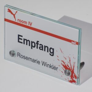 - Der neue Satinatpapier – Einleger wieder in die ESG-Gläser legen und mit den Flachkopfschrauben wieder den Schildhalter fixieren.