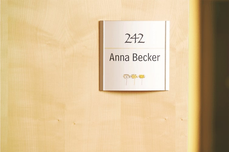 - Die Aluminium Clic Montageplatte wird erst vorab positioniert ausgerichtet und mit Schrauben montiert, das Türschild wird dann auf die Aluminium Clic Montageplatte aufgeklickt.